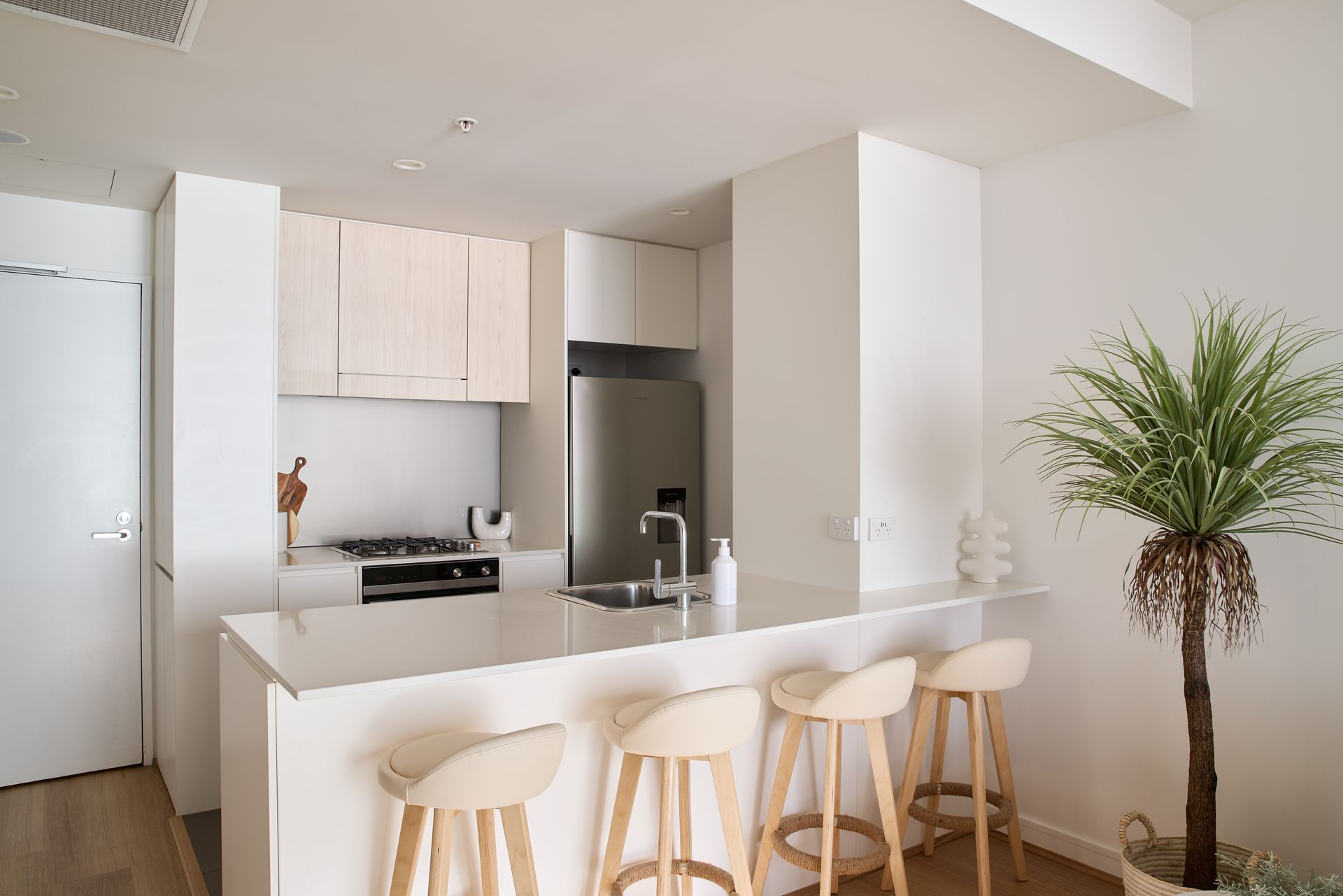 On the 2nd floor of the Arena Residential complex, this apartment features a king bedroom, bathroom with internal laundry, and open plan kitchen, dining and living that open up to the balcony.