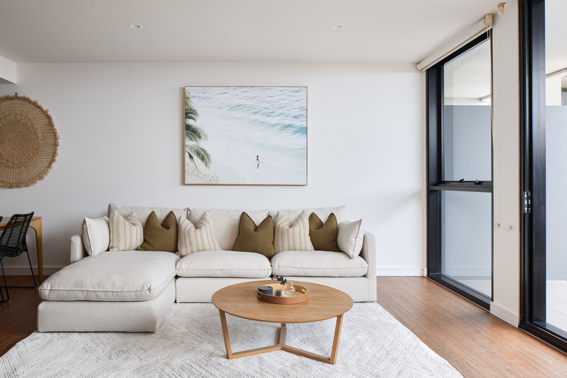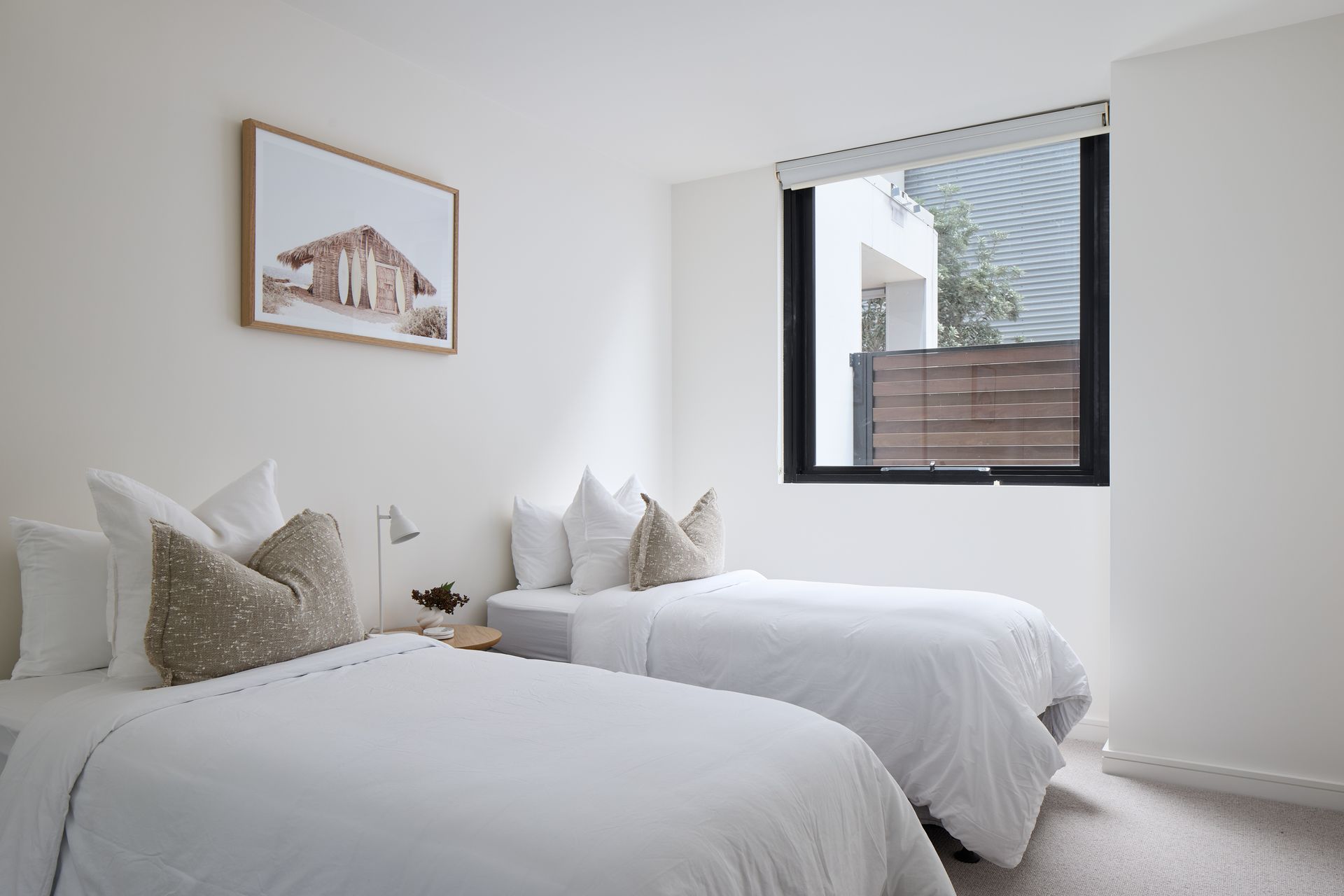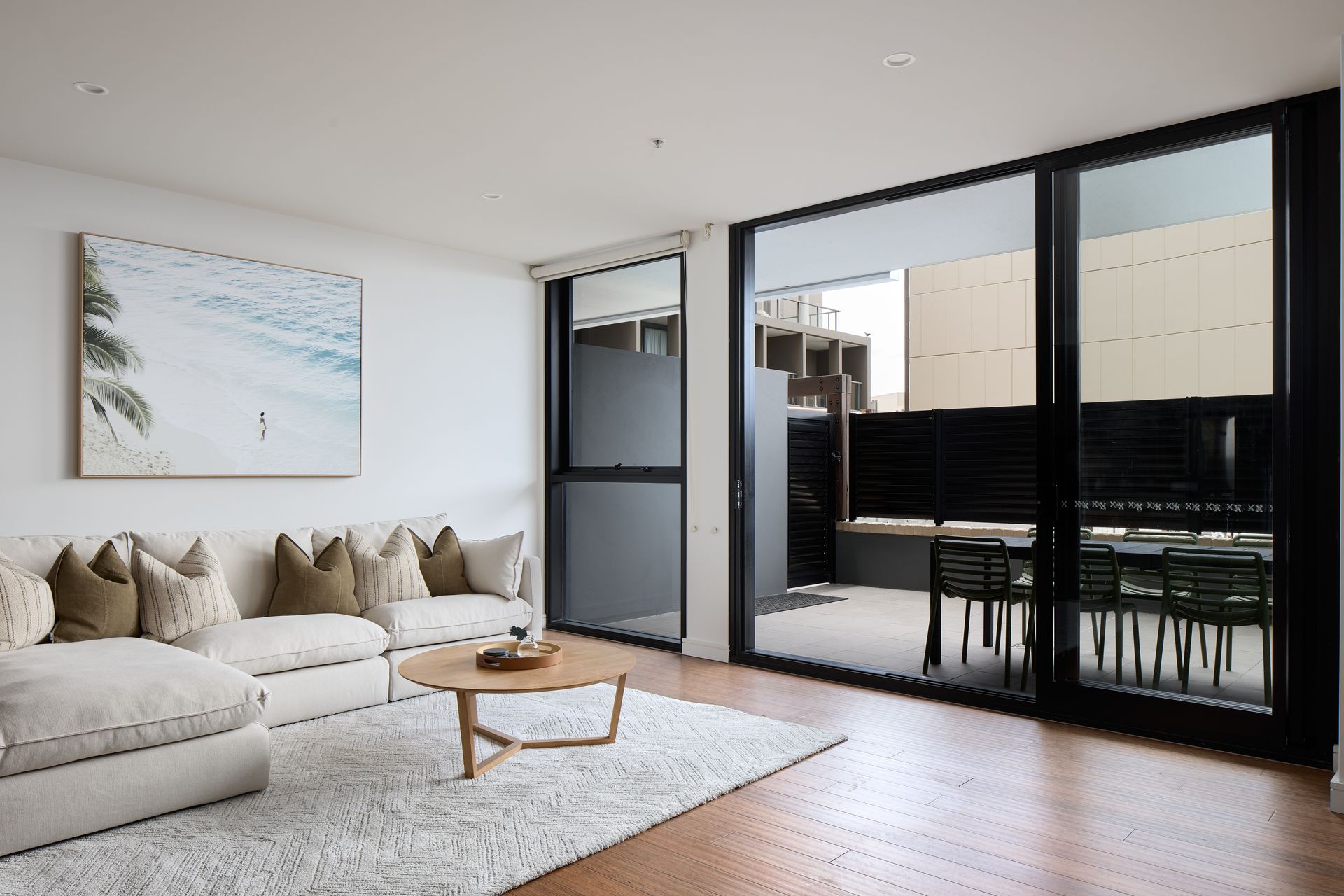 On the ground floor of the Arena Residential complex, this apartment features two queen bedrooms, third bedroom with two singles, ensuite, main bathroom, internal laundry, and open plan kitchen, dining and living that open up to the balcony.